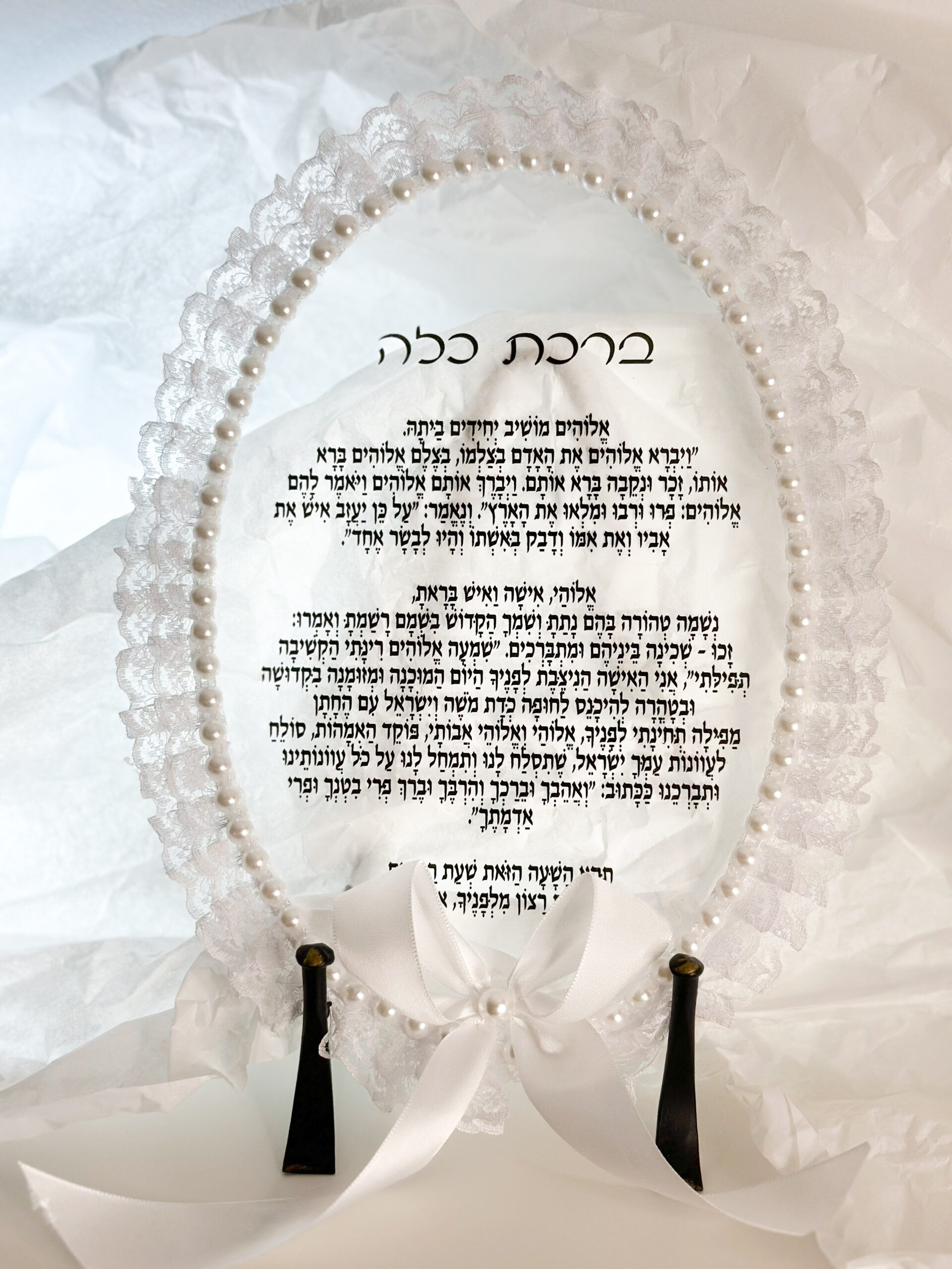 ברכת כלה תחרה כיתוב בשחור
