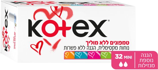 טמפונים ללא מוליך Kotex מידה Mini – סך הכל 32 יחידות